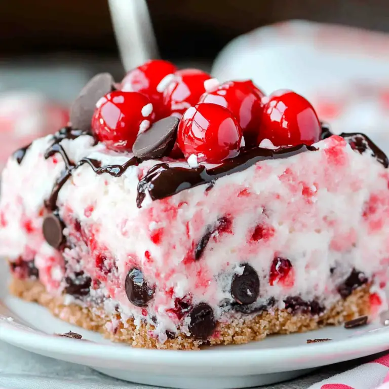 - Top with Cool Whip and garnish with chopped cherries and hot fudge sauce before serving.