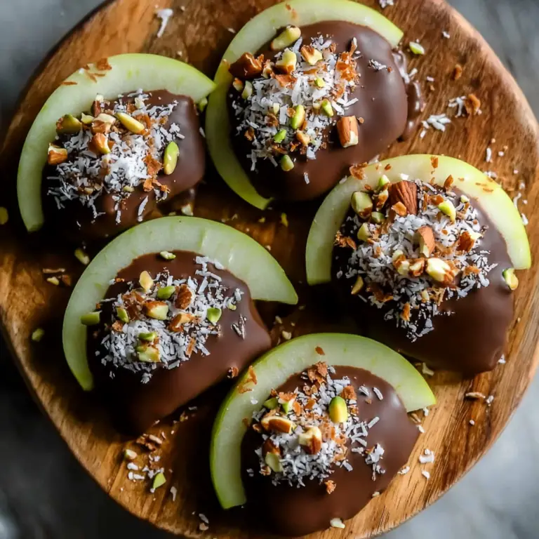 Quick, healthy, and elegant, Chocolate-Dipped Apple Slices with Shredded Coconut, Toasted Nuts, and Seeds make a delightful treat for any occasion. Whether you’re hosting a gathering, looking for a fun snack for kids, or wanting to impress guests with a sophisticated dessert, this recipe stands out. The combination of crunchy apples, rich chocolate, and toppings adds unique flavors and textures that everyone will love.