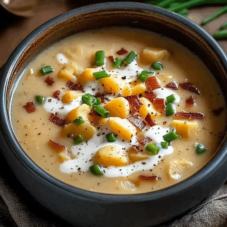 Comforting Loaded Baked Potato Soup is a delightful dish that warms the soul on chilly nights. This rich and creamy soup blends tender potatoes with sharp cheddar cheese and crumbled turkey bacon, making it a perfect meal for family dinners or cozy gatherings. Its unique combination of flavors ensures it stands out, while its straightforward preparation makes it suitable for cooks of all levels.