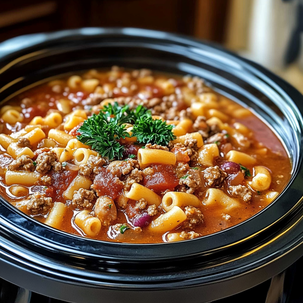 Olive Garden Slow Cooker Pasta Fagioli: Comfort in Every Spoonful is the ultimate warm hug in a bowl. This hearty beef and bean soup is a perfect choice for busy weeknights or leisurely weekends, requiring minimal effort while delivering maximum comfort. Tender ground beef, fresh vegetables, and a delightful mix of beans come together in a savory broth infused with rich marinara sauce and aromatic spices. Each spoonful promises to bring warmth and satisfaction to your family table, making it an instant favorite for all ages.