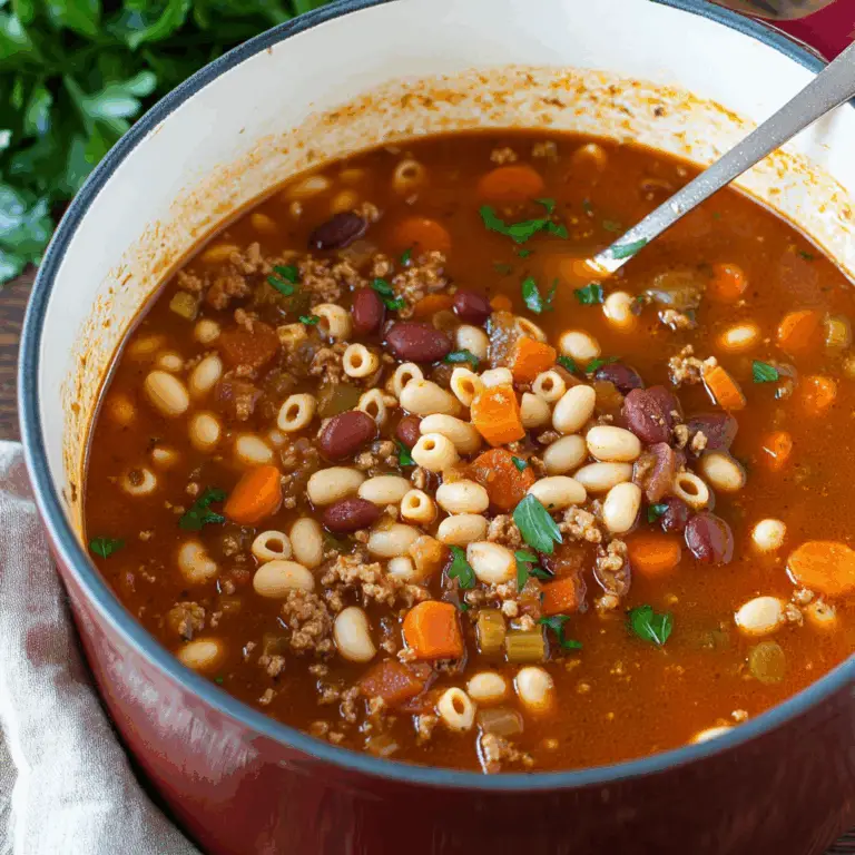 Indulge in a comforting bowl of Pasta e Fagioli Soup, inspired by Olive Garden’s beloved recipe. This hearty Italian dish is filled with tender ground beef, nutritious beans, and fresh vegetables, all simmered in a rich tomato broth seasoned with aromatic herbs. Perfect for cozy weeknight dinners or gatherings with family and friends, this soup is not just satisfying but also packed with flavors that remind you of the finest Italian kitchens. Serve it hot with crusty bread or a crisp salad for a complete meal that’s sure to please everyone at the table.